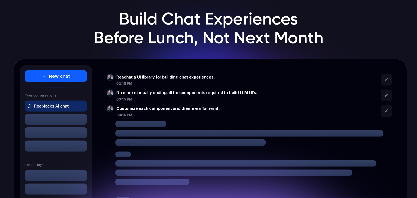 - Highly Customizable: reachat is built on top of Tailwind CSS allowing you to customize every aspect of the chat UI to your specific needs.
